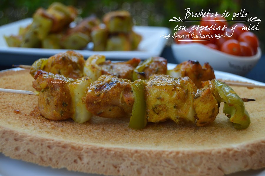Introducimos las brochetas en el horno y las asamos durante unos 15 minutos. Mientras las tenemos en el horno las vamos pintando con la marinada y dándoles las vuelta, para que se caramelicen por todos los lados.