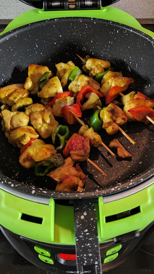 Estas brochetas son una delicia; hagas las que hagas, y por pocos que seáis, no quedará ni una. En la Cecofry quedan perfectas, sin humos ni salpicaduras. También ideales para una barbacoa y por supuesto al horno y a la plancha. Pero aquí la turbocecofry 4 d gana al resto de aparatitos.