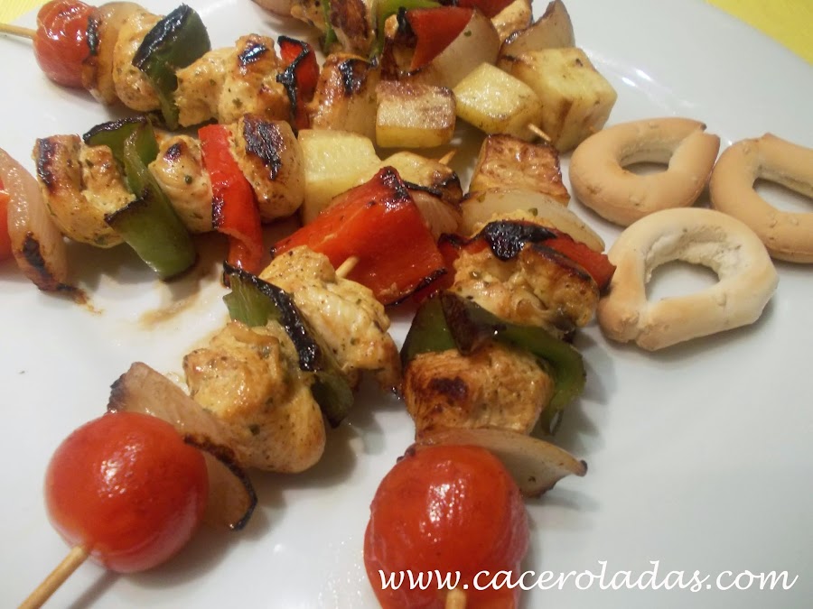 Y ya tenemos nuestras ricas brochetas de pollo marinado con verduras a la plancha....