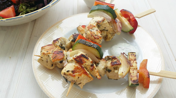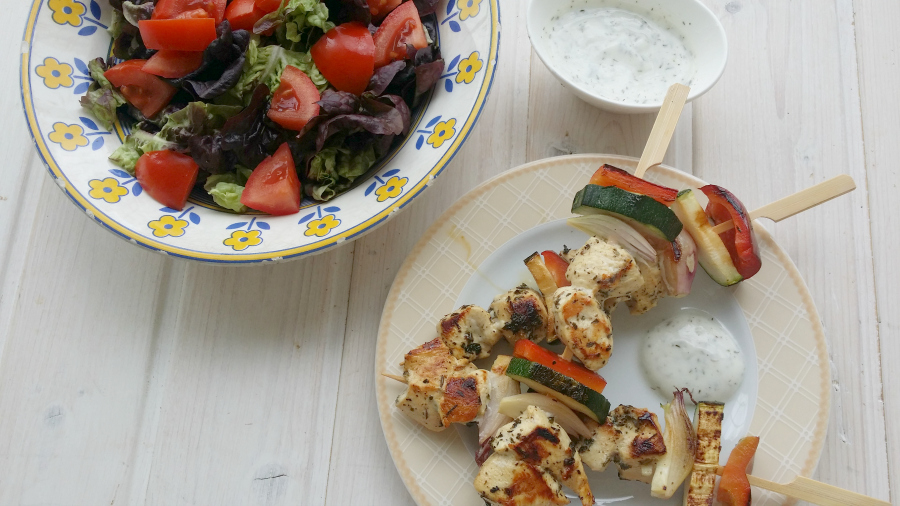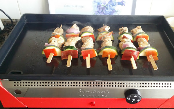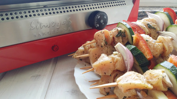 Brochetas de pollo y verduras con tzaziki {a la plancha Simogas}
