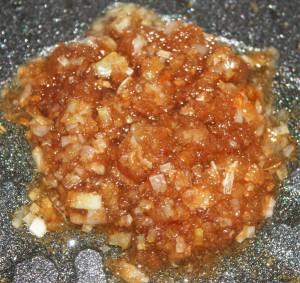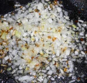 En una sartén con las dos cucharadas de aceite dorar la cebolla.