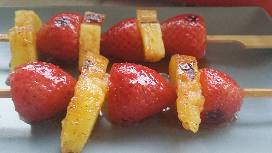 Brochetas especiadas de fresa y piña {a la plancha Simogas}