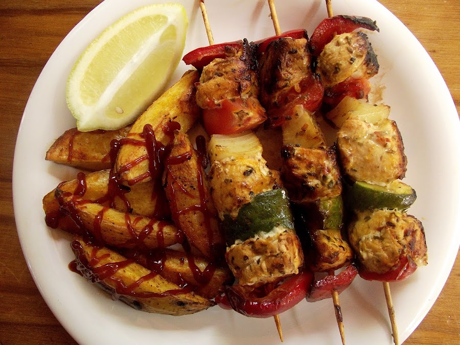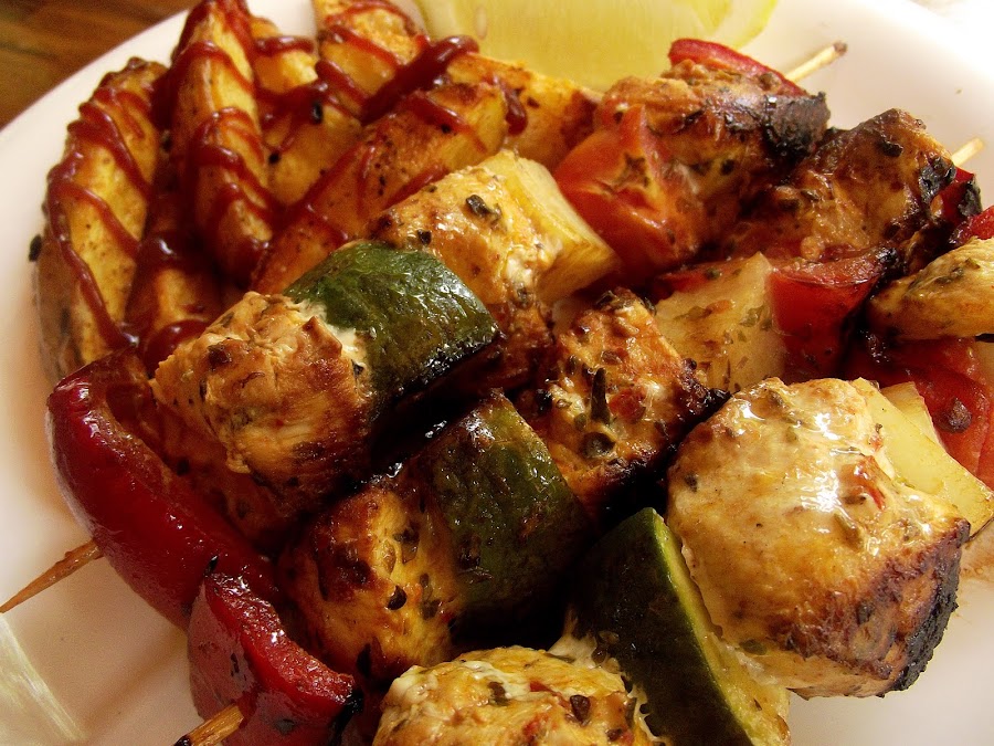 Cocinar las brochettes en un disco, plancha o parrilla. Acompañar con papas fritas o al horno.