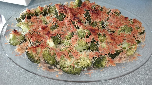Lo primero que hay que hacer es hervir el brocoli, cuando esta echo se escurre y se echa en una fuente, mientras las anchoas se cortan muy pequeño, el ajo también muy pequeño, se echa en un bol y se mezcla todo con el pan rayado y el aceite de oliva. Cuando se a mezclado todo muy bien se echa por encima del brocoli, cuando se acaba de echar la mezcla se echa el queso y se pone por encima para que se gratine en el horno y cuando se gratine ya esta listo para comer. Buen provecho.
