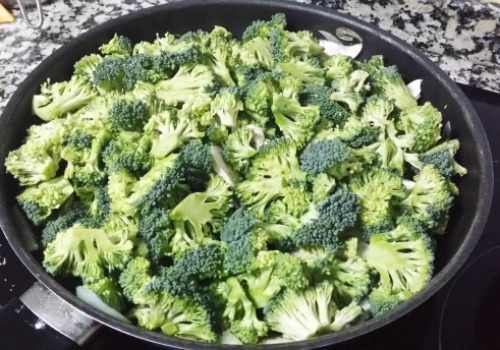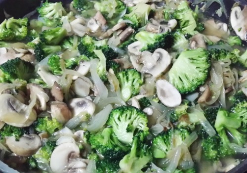 En ese momento agregamos los champiñones frescos y el brócoli,