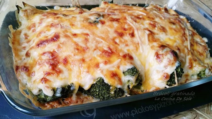 En una bandeja apta para horno, embadurnada de aceite, colocamos el brócoli. Sobre el vertemos la bechamel y espolvoreamos con la mezcla de cuatro quesos.