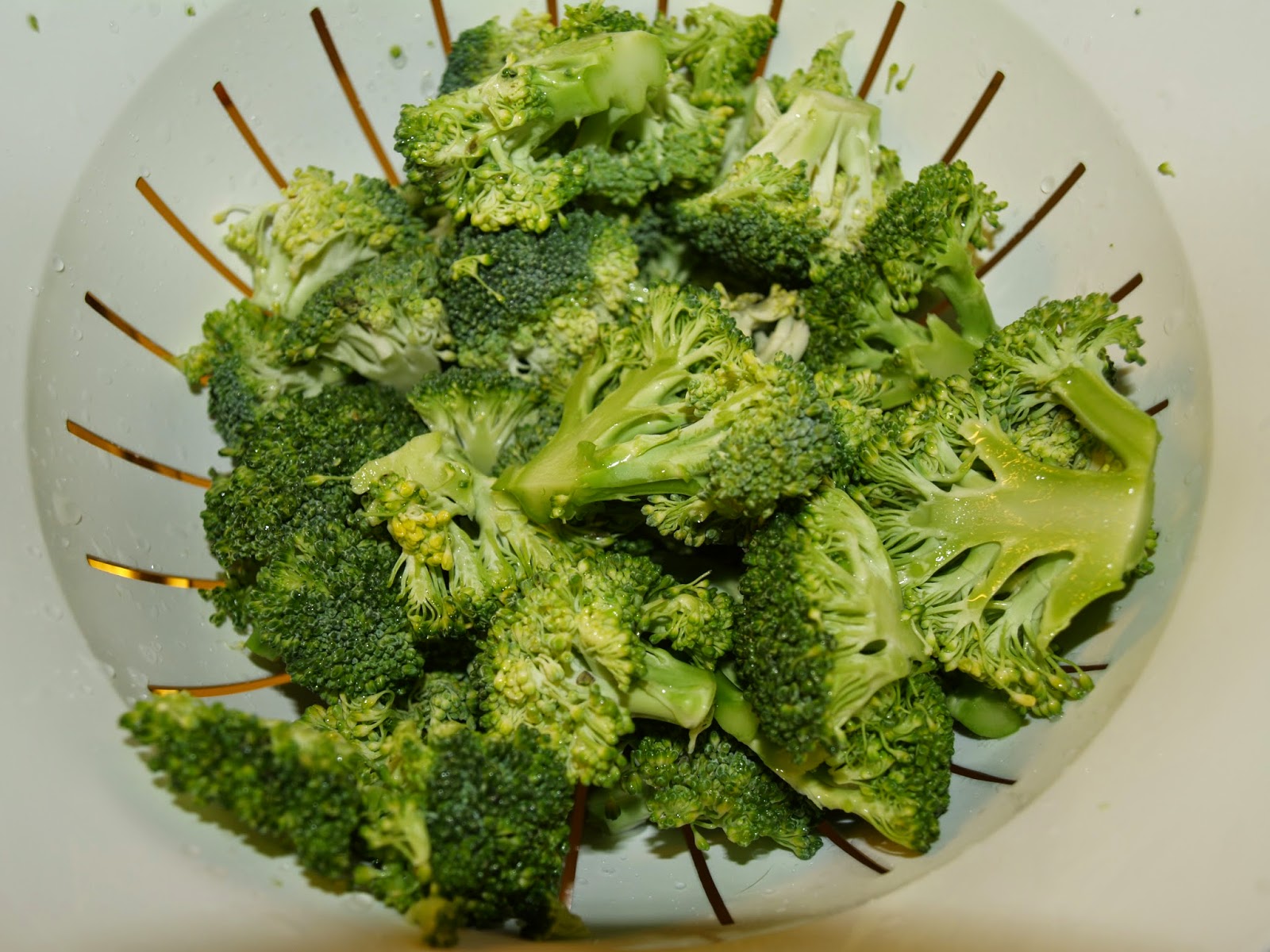 - En una cacerola ponemos a hervir agua con un poco de sal. Cuando esté lista, cocemos los ramilletes de brócoli cortados por la mitad, unos 3 o 4 minutos. Lo justo para que estén "al dente", no los queremos muy cocidos. Una vez cocidos los colamos para que escurran el exceso de agua y reservamos.