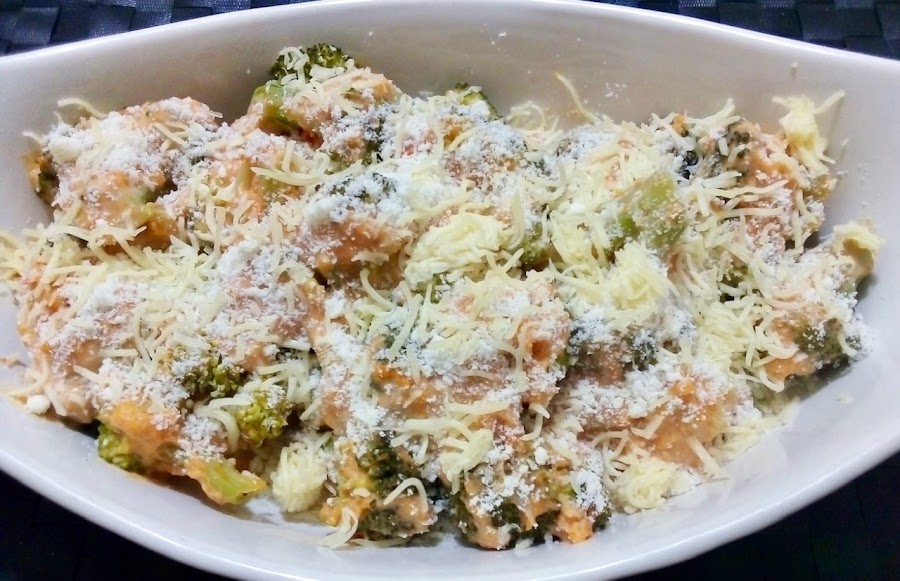 Cubre los ramilletes de bróquil con la salsa y el queso rallado ponlo en el horno hasta que este dorado.