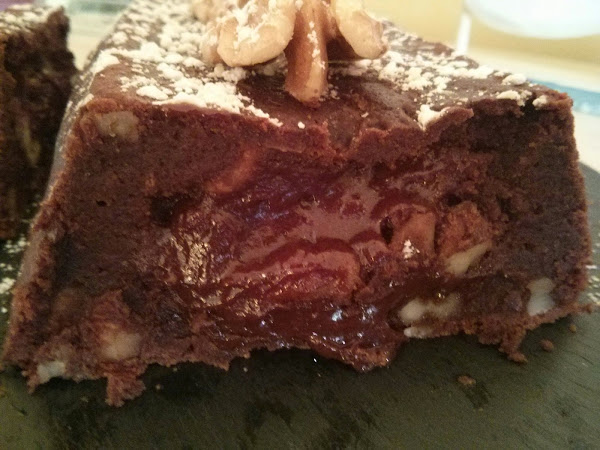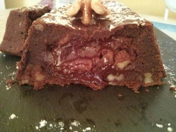 De be quedar un poco crudo por dentro, para que el chocolate se deshaga al partirlo, pero si os pasáis de temperatura o tiempo, no pasa nada, como brownie está estupendo!!