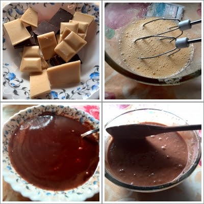 Fundimos el chocolate en el micro,siempre de poco en poco tiempo, para evitar que se queme...