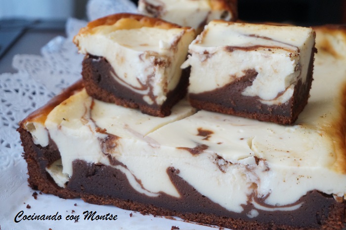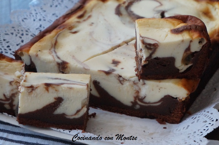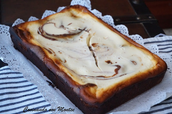 Hoy os traigo un brownie cheescake, una mezcla de dos postres que juntos son espectaculares, riquísimos, ya que el sabor fuerte de chocolate con el contraste de la tarta de queso que es mas suave es espectacular. Una delicia de postre.