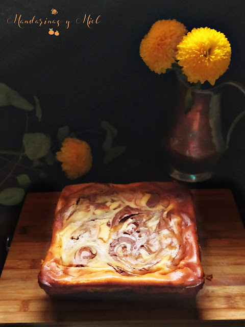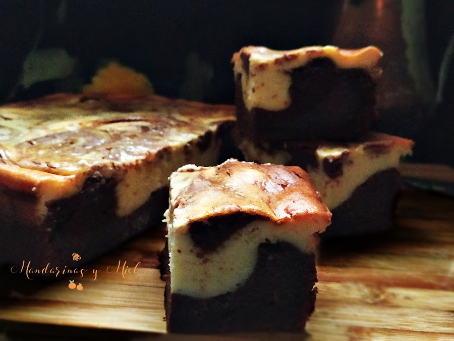 Estuve buscando diferentes recetas de brownies, y en cuanto vi esta ya no miré más; en casa nos encanta el brownie y nos chiflan las tartas de queso, así que decidí hacerla porque estaba segura de que nos iba a encantar.....y no me equivoqué.....cada bocado es una increíble delicia para el paladar!!