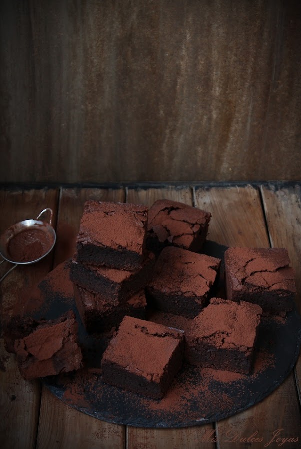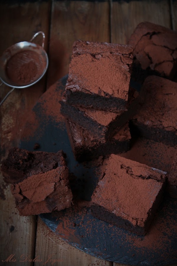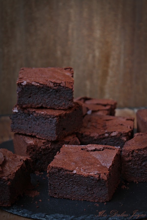 Esta fue una de las primeras recetas que quise publicar en el Blog, pues ya veis, solo he tardado tres años en publicarla, casi nada, jajaja... Menos mal que todavía sigo por aquí en la blogosfera y estos brownies pueden ver la luz en mi Blog. Sé de alguien que se pondrá muy contenta en cuanto los vea, porque no sé en cuantas ocasiones le he pasado la receta y sigue sin tenerla, ehmm..:)