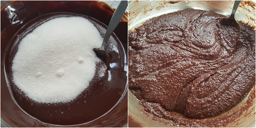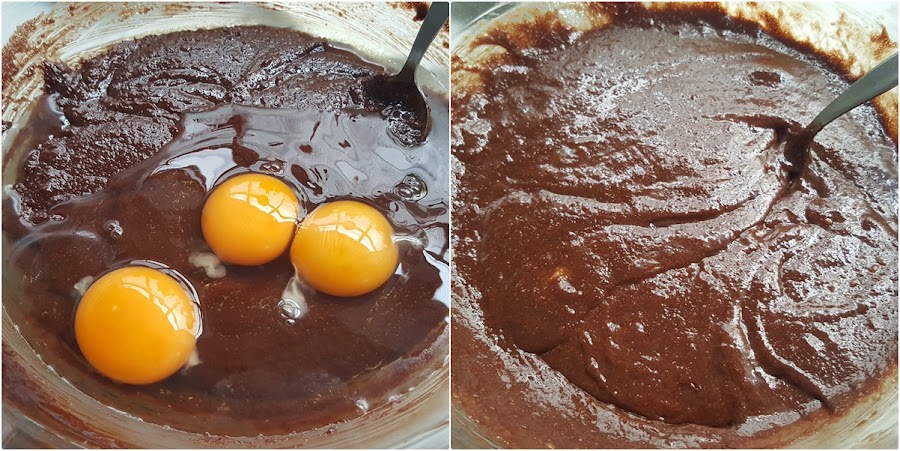 Es muy importante que todos los ingredientes estén a temperatura ambiente (no el ambiente frío de este invierno..) sobre todo los huevos, para que no endurezcan la masa con el chocolate.