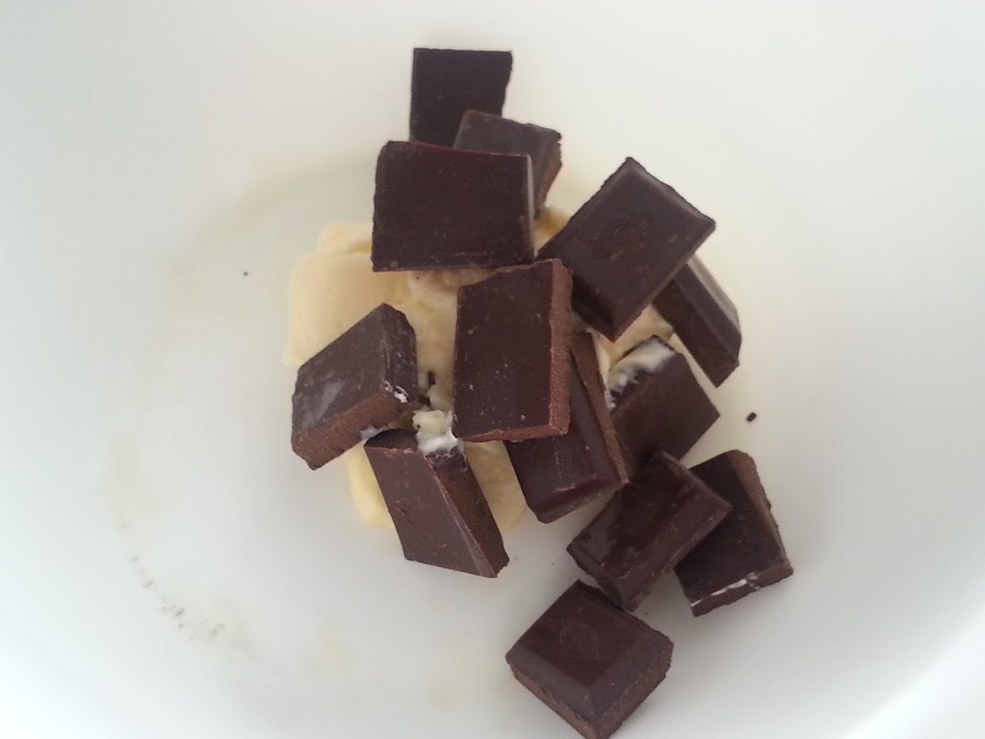 1. - Encendemos el horno a 180º C y ponemos en un bol el chocolate troceado con la mantequilla.