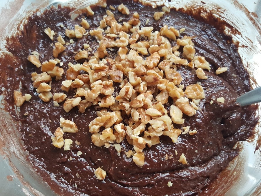 7. - Añadimos las nueces troceadas y removemos para que se repartan.