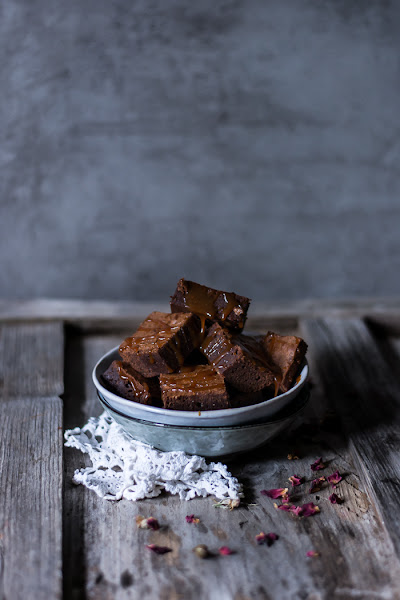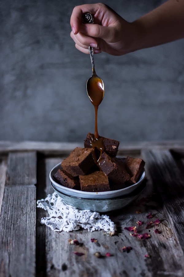Le puedes servir con helado o nata (crema de leche) o como yo en esta ocasión con Caramelo Salado que está de muerte.