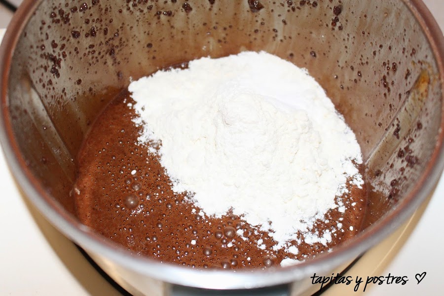 Añadir ahora el chocolate y volver a mezclar 1 minuto más velocidad 5.