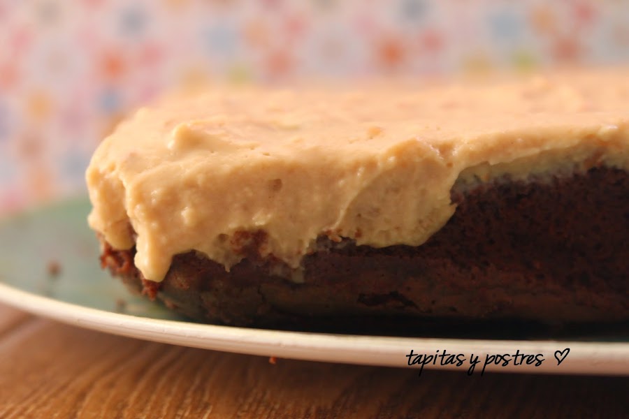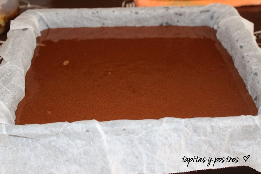Cuando la mousse haya perdido calor la echamos sobre brownie ya frío y dejamos en el frigorífico para que cuaje, hasta el día siguiente.