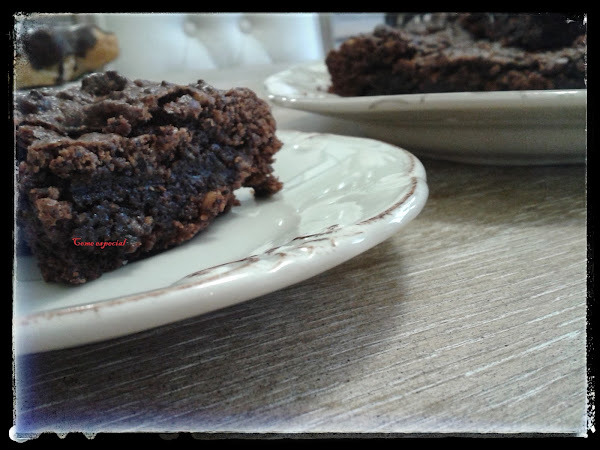 ELABORACION TRADICIONAL: Triturar bien el chocolate. Si no cuentas con ningún aparato que haga esta función, rállalo. Golpear un poco las nueces o molerlas, si prefieres no encontrar trozos. Mezclar bien los sólidos en un recipiente. Batir los huevos para luego verter poco a poco el azúcar y remover para integrarla. Acto seguido, verter el aceite y mezclar. Con cuidado vaciamos progresivamente el contenido sólido en el líquido para incorporarlo hasta tener todos los ingredientes juntos y unificados. Quedará bastante espeso, como una pasta. Verter en un recipiente untado en aceite de oliva. Esta cantidad es válida para una bandeja como la de la foto superior y queda con esa consistencia. Hornear durante 15-20 minutos a 180º con calor arriba y abajo. Estará en su punto cuando pinchemos y saquemos la punta del palillo (o lo que hayamos usado) un poco manchada.