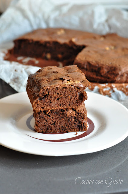 Yo creo que es el postre preferido en mi casa, o uno de los preferidos (que pensando pensando son unos cuantos). Esta receta la hago desde hace ya 8 años y aún no he encontrado otra más rica que la reemplace. El BROWNIE que hoy nos ha propuesto Carolina para el Desafío en la cocina de este mes, es un bizcocho húmedo con una capa crujiente por encima y generalmente lleva nueces en su interior. Parece ser que su origen fue un descuido (bendito descuido) porque a alguien se le olvidó añadir la levadura. El secreto de este postre es que el interior esté poco cocido y que tenga una ligera capa crujiente por encima. Si lo acompañas de helado y sirope de chocolate es una auténtica delicia