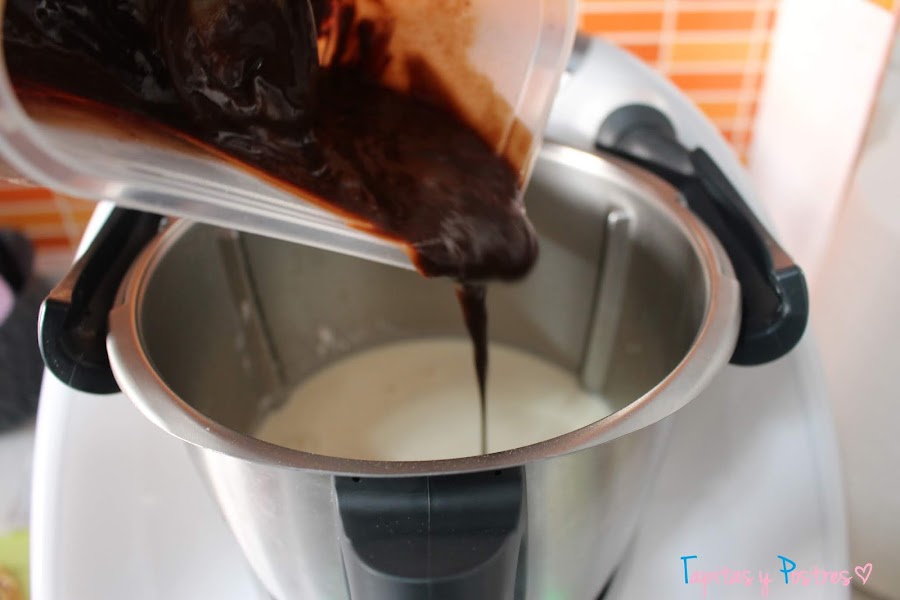 Incorporamos el chocolate fundido y volvemos a mezclar 20 segundos a velocidad 3 1/2.