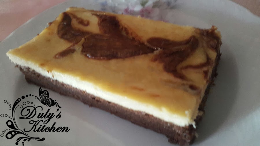 - Para evitar que se mezclen el chocolate y la tarta de queso pon una cuchara del revés mientras viertes la mezcla de queso para que caiga con suavidad.