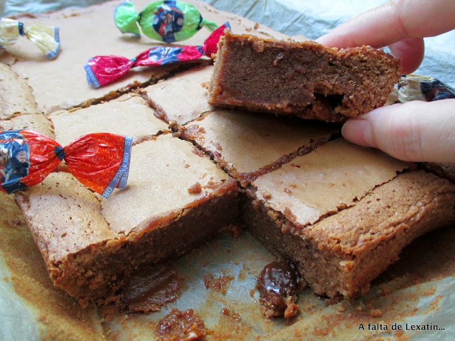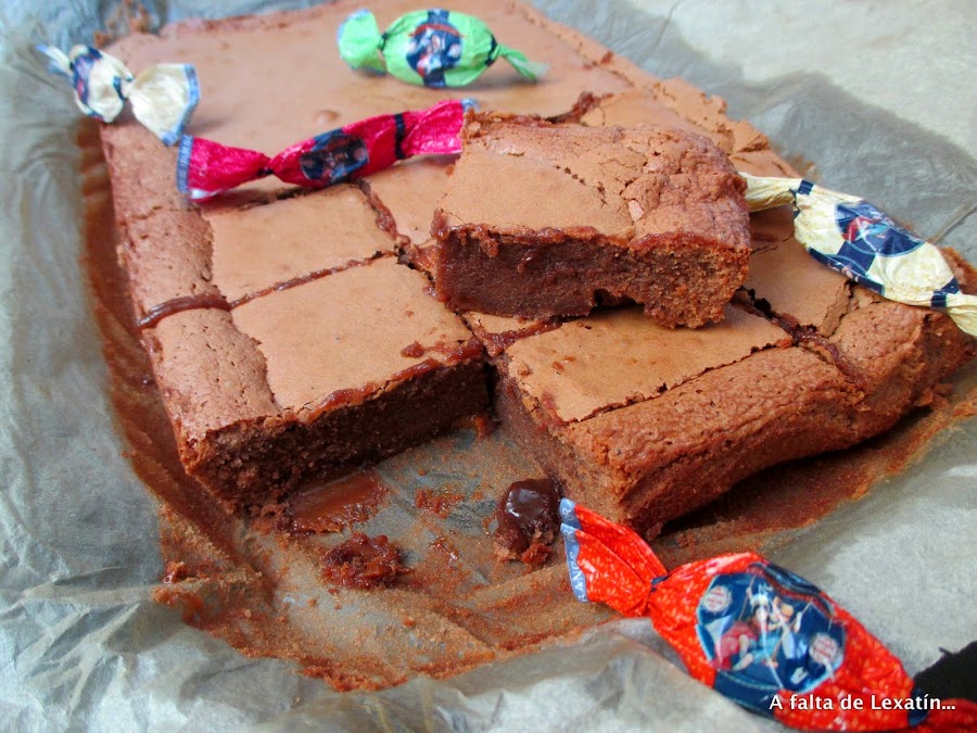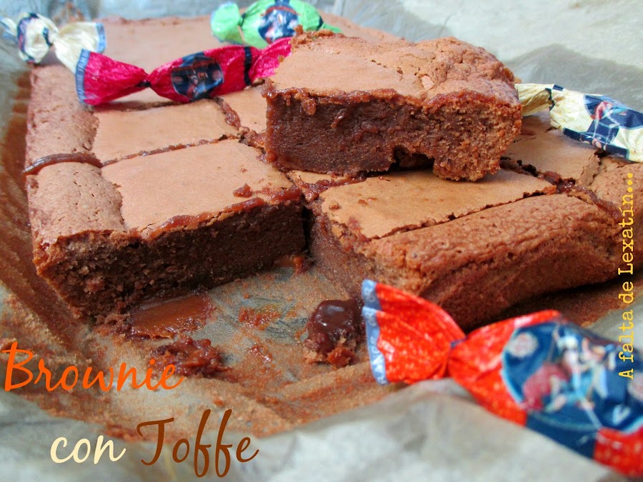 Hoy vengo con una receta para compensar la escasez de calorías de las salchichas light del otro día, y es que si algo tiene el brownie , aparte de su delicioso sabor, es aporte calórico de los buenos, pero como veo que todo el mundo anda nevado, llovido o helado... aquí ni una gota oiga, pero quitando ya el aire acondicionado a ratos... seguramente os venga bien para esta llegada brusca del otoño, además lleva caramelos de toffe...a que estais empezando ya a saborearlos ? jejejeje