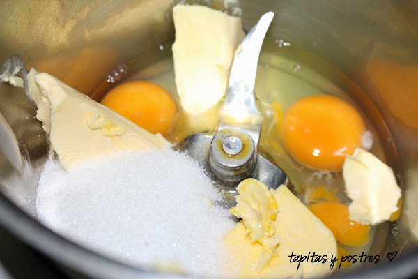 Los ingredientes van todos juntos, huevos, mantequilla, azúcar...
