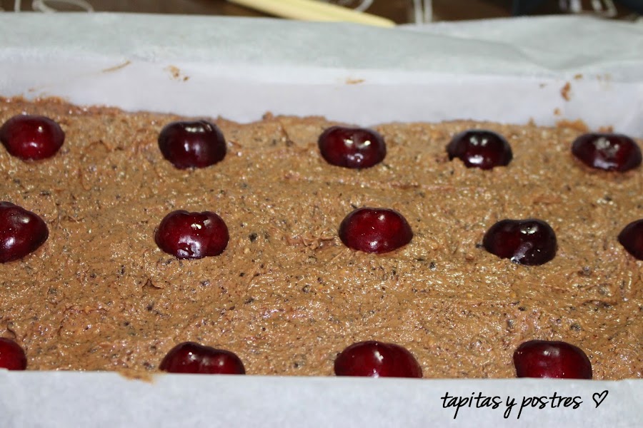 Es una receta rápida. lo más entretenido es deshuesar las cerezas, por lo demás es de esas recetas que van todos los ingredientes juntos, triturar y al horno.
