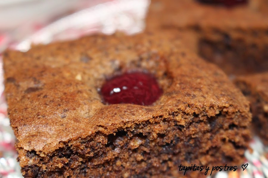 El resultado es buenísimo, un brownie con un intenso sabor a chocolate y con el punto fresco del bocado de cereza.