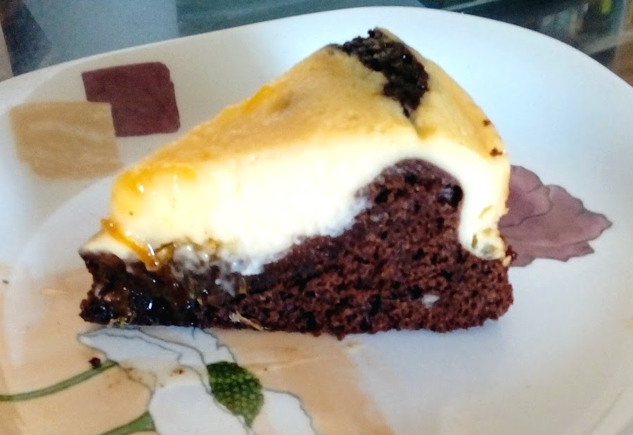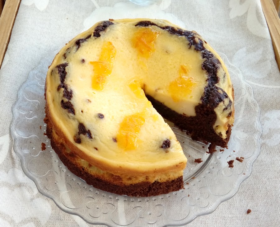 Así que hice este rico postre, un brownie con cheescake de naranja, que me quedó fabuloso, con un sabor a naranja y chocolate.