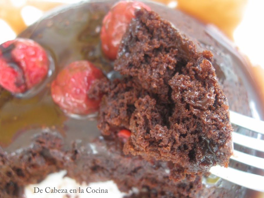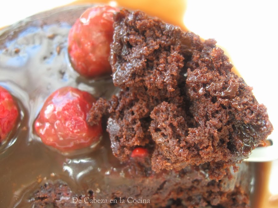 Esta receta, la he preparado un par de veces, la primera no tenia harina con levadura y a la medida de harina de la receta le agregue 1/8 de cucharadita de levadura y lo deje 2 minutos en el microondas, me quedo la receta para mi gusto mucho mejor, por que la masa quedó mas "apretada" quiero decir mas tipo brownie, con la harina con levadura comprada de supermercado queda mucho mas esponjosa. Os cuento mi experiencia, de esta forma me gustó mucho mas, vosotros lo probáis y me contáis.