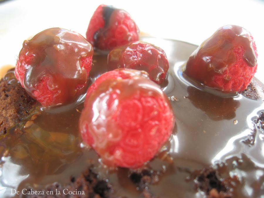 Igual que el del Ribs, tiene muchas calorías, mi fuente de la receta dice que pongas estas cantidades en una taza, yo hice un solo brownie, en tazón mas grande por que sale mucha cantidad, pero no lo comimos entre tres y me parece que es suficiente, por aquello de ponerle una vela a Dios y otra al Diablo no le puse helado y si unas frambuesas... .ja ja ja, siiii.. claro que eso ayuda, pero que os voy a decir si yo soy de las que se pide un pastel de muerte por chocolate y un café con sacarina para acompañar? todos se ríen de mi, pero yo se por que lo hago y lo seguiré haciendo, es que... así soy yo... volviendo a las frambuesas, os las recomiendo, ya que contrasta el ácido de la frambuesa de manera exquisita con el dulce del brownie y la salsa de chocolate.