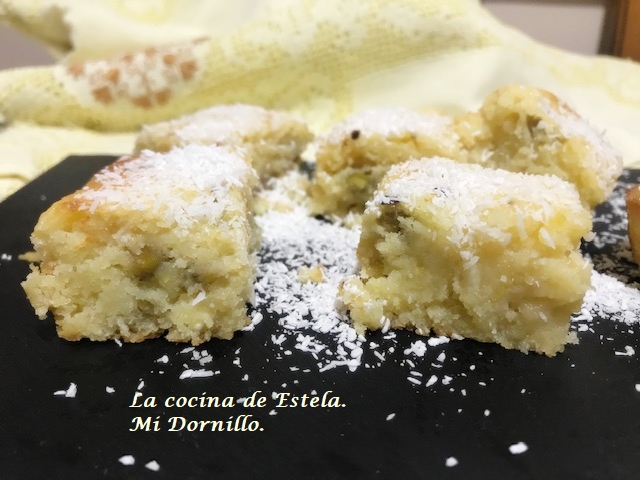 Corta en cuadrados y sirve espolvoreado de coco.