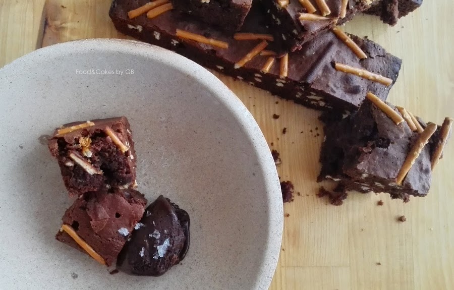 Esta vez vengo con otro Brownie jugando con el dulce y el salado....además de acompañarlo con un helado de chocolate apto 100% para nosotros, los adictos al chocolate.