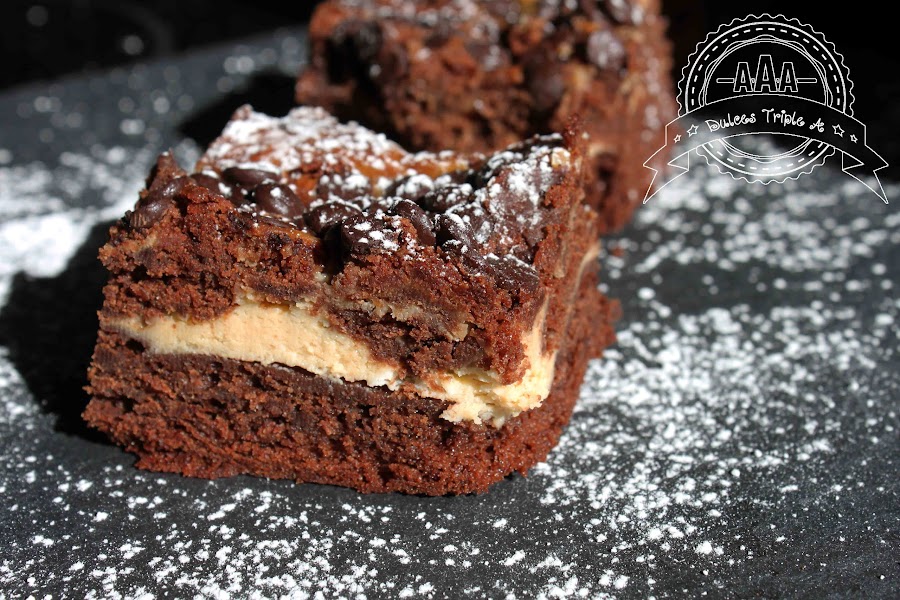 Esta semana me ha dado por hacer brownie y como me gusta tanto las tartas de queso no me lo pensé dos veces, brownie y tarta de queso juntas!! uhmm una delicia para el paladar, encima se une que el pasado mes de Febrero fue mi cumple y el de prácticamente casi todos mis sobrinos, (vaya puntería que han tenido mis hermanos), la cuestión que no pude llevar nada a mis compañeros y me lo han recordado todo este tiempo.....así que para redimirme he preparado este brownie con crema de queso, va por ellos y por todos vosotros, espero que os guste...a ellos les encantó.