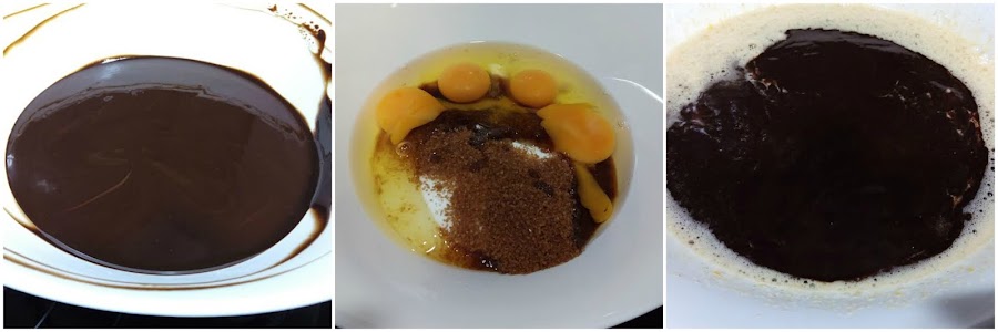 1 c/p extracto de vainillaEn un bol al baño maría derretimos el chocolate y la mantequilla. Por otra parte batimos los huevos con los 2 tipos de azúcar hasta obtener una mezcla homogénea. Incorporamos la vainilla y la mantequilla con el chocolate derretidos.