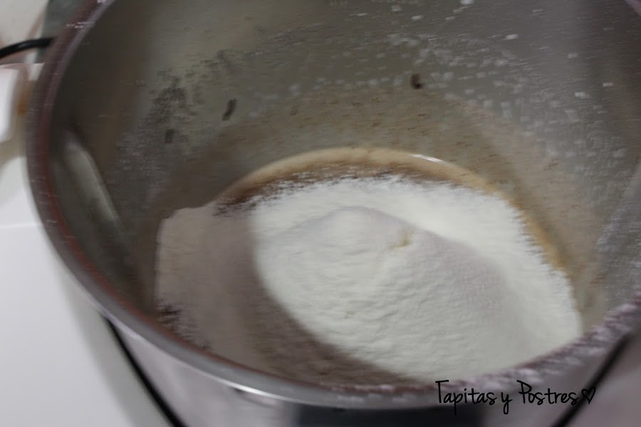Tamizamos la harina con un colador y mezclamos 30 segundos a velocidad 4.