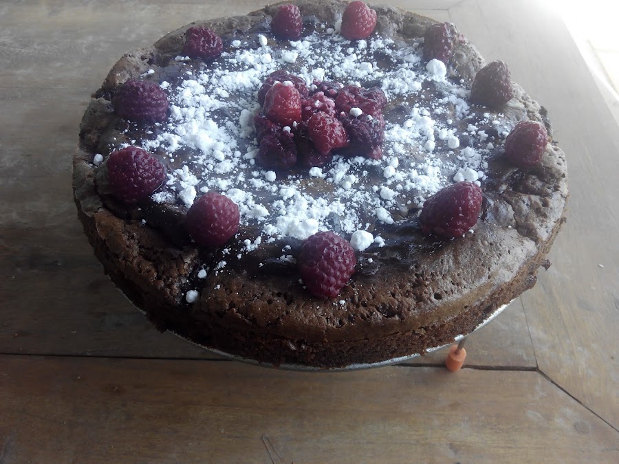 Una vez frío podemos decorar con frambuesas y azúcar glas.
