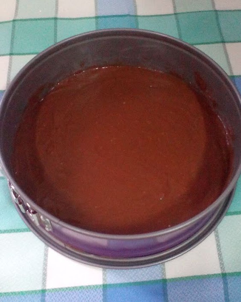Colocamos la masa en un recipiente para horno, previamente engrasado con mantequilla.