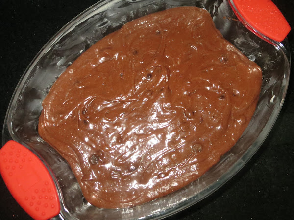 Finalmente, añadimos la harina tamizada y las chispas de chocolate, mezclamos bien y vertemos sobre un molde untado de mantequilla y lo metemos al horno a 180º durante 30 minutos. Lo sacamos y cuando este tibio lo servimos con una bola de helado, en este caso vainilla, pero podéis elegir vuestro sabor preferido.