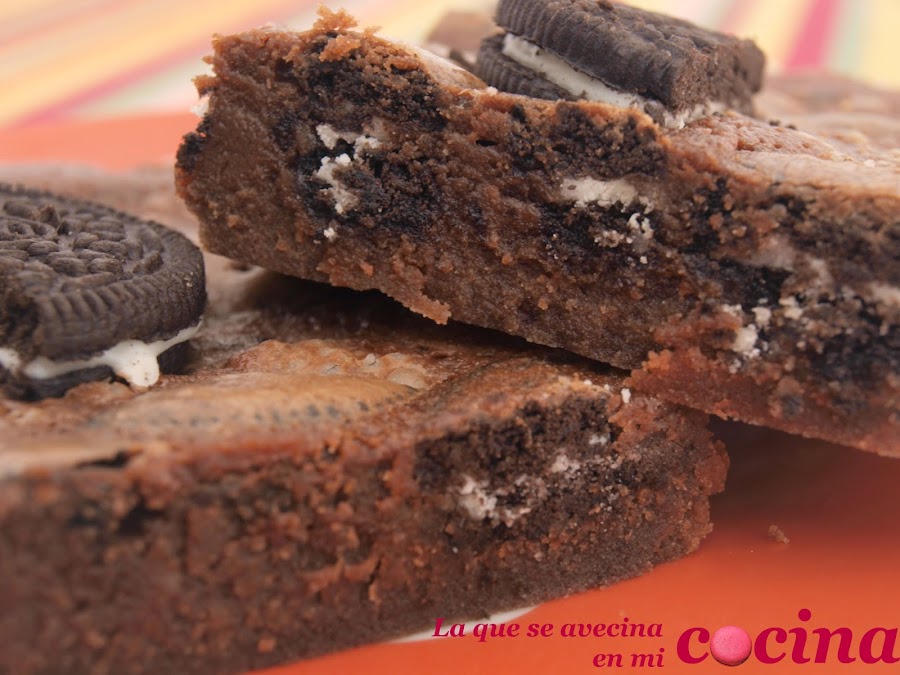 Y listo. Ya tendríamos nuestro brownie de oreo hecho. Ahora sólo nos quedaría cortarlos en porciones, el tamaño según el gusto de cada uno, y degustarlo. Si queréis le podéis añadir una bolita de helado de vainilla para contrarrestar tanto chocolate.