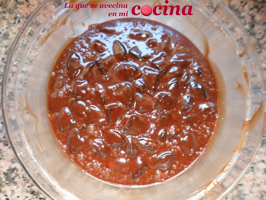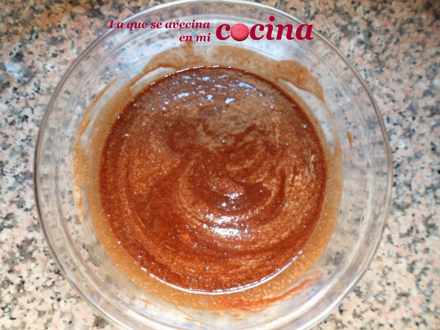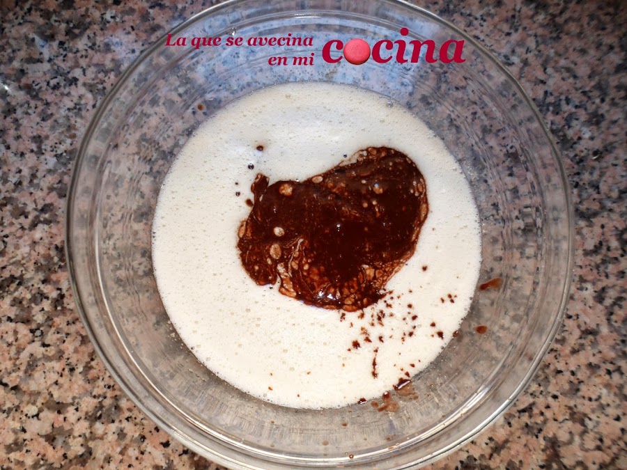 Cuando tengamos esa mezcla conseguida le añadiremos el chocolate fundido y removeremos hasta que se integren perfectamente ambas mezclas.