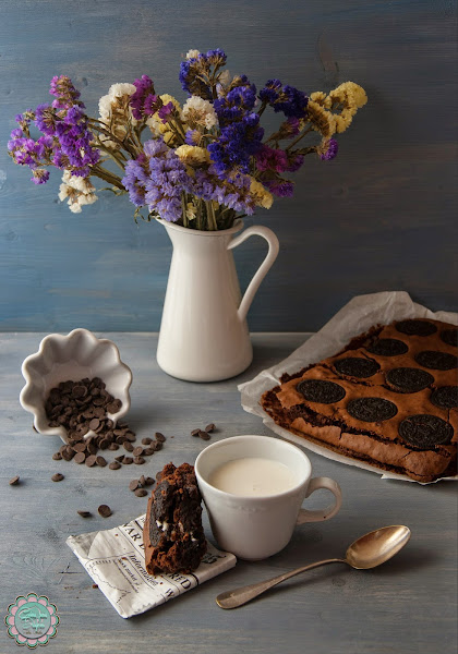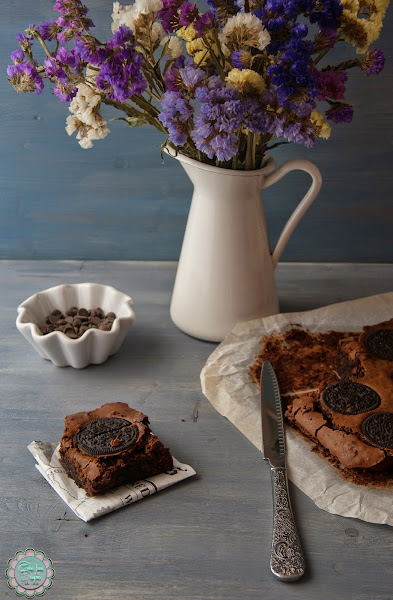 10) Horneamos unos 35-40 minutos, recordad que dependerá de vuestro horno, pero el brownie, no debe quedar seco por dentro. Cuando lo saquéis, no seáis ansias como yo, dejad que se enfríe antes de desmoldar o se agrietará como veis en las fotos. No pasa nada, está buenísimo igualmente, pero tiene menos presencia.