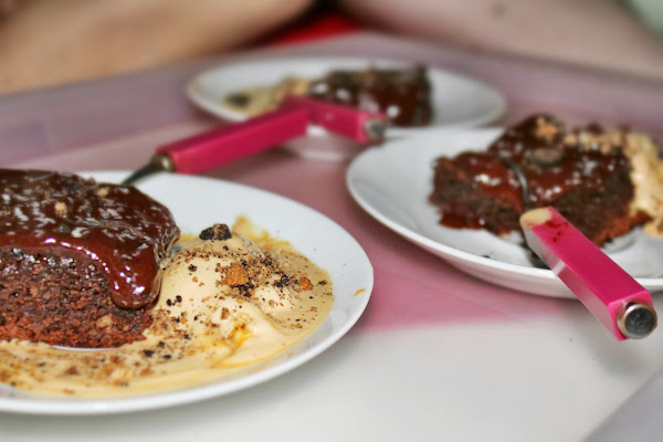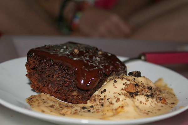 Cuando esté listo (comprobar pinchando con un palillo, aunque a mí el brownie me gusta sacarlo cuando al introducir el palillo y sacarlo queda un poco de masa pegada, porque me gusta esa textura cremosa por dentro) podéis dejarlo enfriar o tomarlo caliente que es como me parece que está más bueno. Espolvoreamos un poco de azúcar glass por encima para decorar y si queréis podéis hacer una salsa de chocolate caliente para echarle por encima...¡ME ENCANTA!