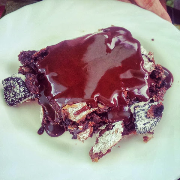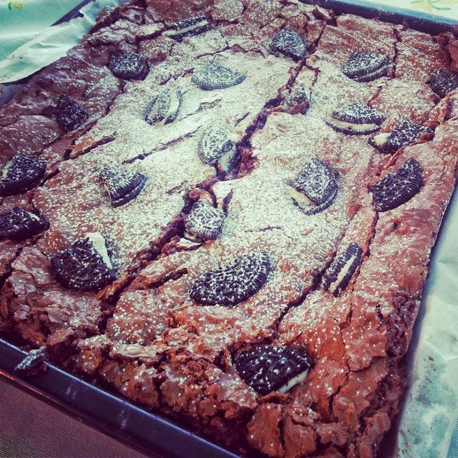 Desde aquel fin de año que hice mi primer brownie he repetido la receta muchas veces, al principio hacía la clásica con chocolate y nueces, pero como tengo una amiga alérgica a las nueces pero que le encanta el brownie, un día pensé en hacer la misma receta sustituyendo las nueces por algo que le gustara a todo el mundo. Y pensé... ¡¡¡OREOS!!! Que además en internet hay muchísimas recetas de brownie de oreo y las fotos son... Mmmmmm (con eso lo digo todo ¿eh?)