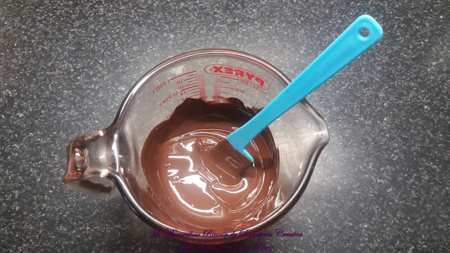 En primer lugar, fundimos el chocolate en el microondas (cuidado porque se os puede quemar, yo recomiendo ir poniéndolo de 20 en 20 segundos a baja potencia y remover). Cuando se haya fundido el chocolate, añadimos la mantequilla derretida y lo mezclamos todo bien con unas varillas de mano.