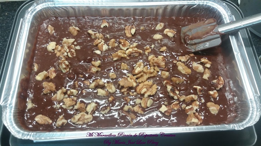 Removemos de nuevo de forma manual, añadimos las nueces picadas en trocitos y mezclamos suavemente por última vez.