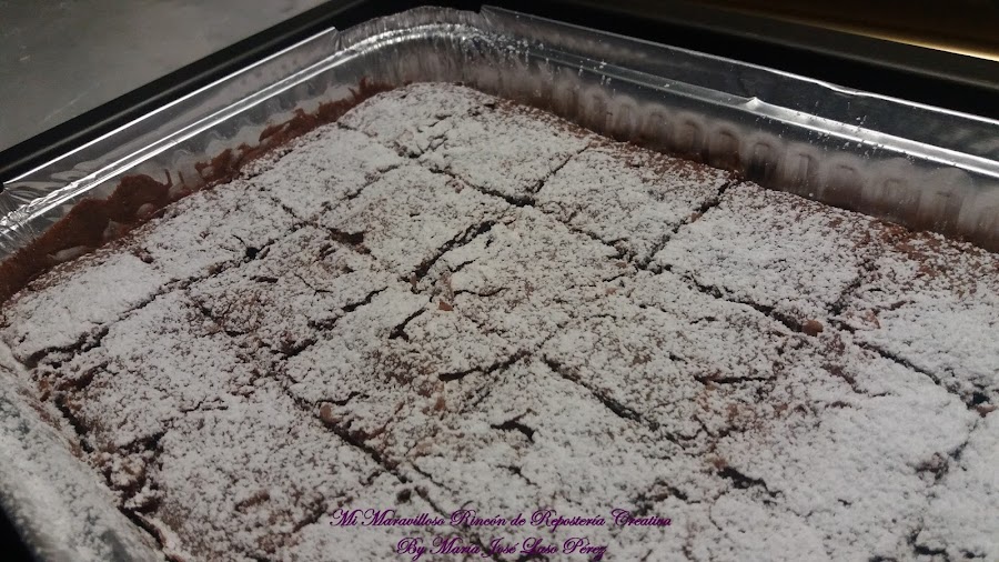 Cuando se haya enfriado, desmoldamos, cortamos en rectángulos pequeños, espolvoreamos por encima azúcar glasé y listo.